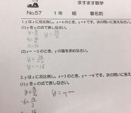 数学の研究授業は反比例の学習です。