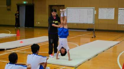 マット運動に一生懸命取り組んでいます。