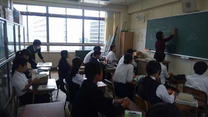 2限目の2年1組では、数学科習熟度別少人数授業の校内公開授業が行われています。