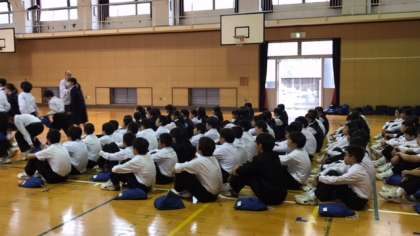 6限は合唱コンクールのリハーサルです。写真は座席位置の確認です。
