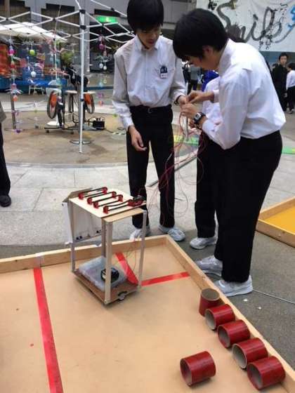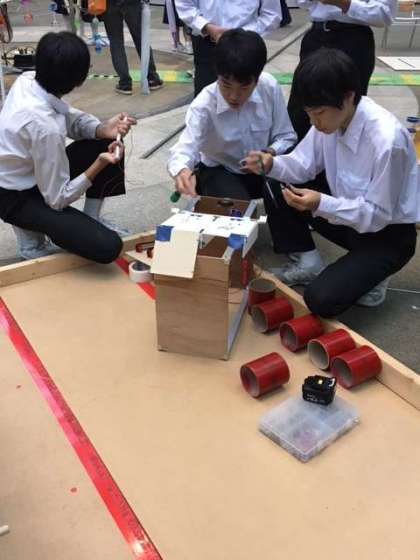 ロボットの整備後、練習コートで試走しました。