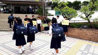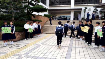 フレッシュで、元気な大きい声の「おはようございます!」が正門前で響いています!