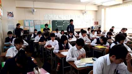 2時限目、2年3組の国語科では、「枕草子」清少納言の教材をもとに、現代かなづかいや古語について学びながら、春夏秋冬のそれぞれの季節感を理解していける授業をしています。