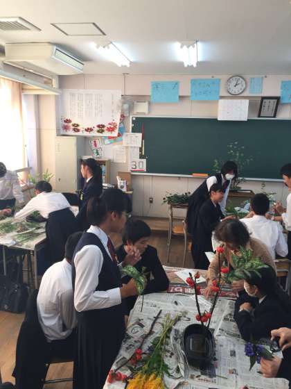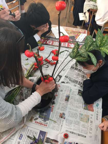 なかなか剣山に刺さらないものもあるようで工夫の仕方を考えています!