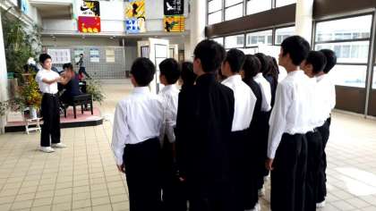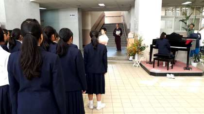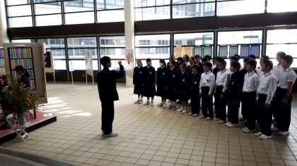 ホールではまたまたまた、素晴らしい合唱が響いています。今度は1年生です。2、3年生にもひけをとらない元気な声です。明日さらにがんばれ!!