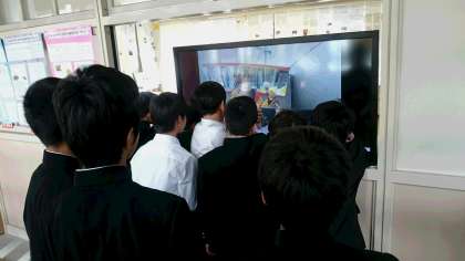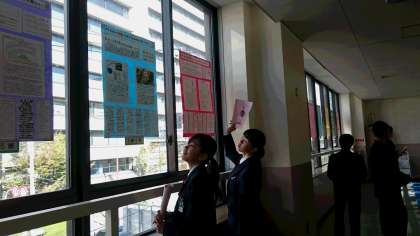 映像展示にも、ポスター展示にも興味津々の1年生です。