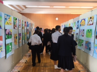 多目的室では、2・3年生の美術作品が掲載されています。1人1人の思いがつまった作品ですね!