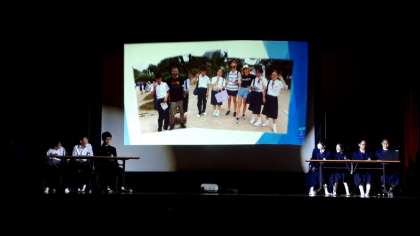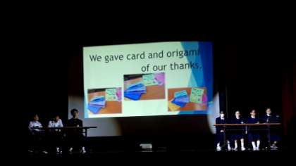 続いてESS部の発表です。夏休みに大阪城公園に行き、外国人の方々にインタビューをした内容を見事な英語で発表してくれます!