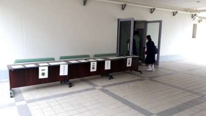 あいにくの雨になりましたが、東中生はすでに登校し、準備が始まっています。