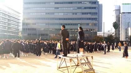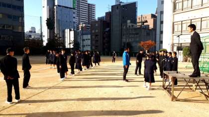 朝夕と日中の寒暖の差が大きく、体調管理が難しいですが、東中生は元気に登校してきました。まもなく全校集会が始まります。今日から運動場で行われます。