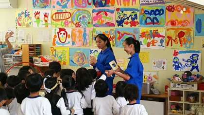 朝から園児たちもお姉さんたちに会えるのを楽しみにしてくれていたようです。