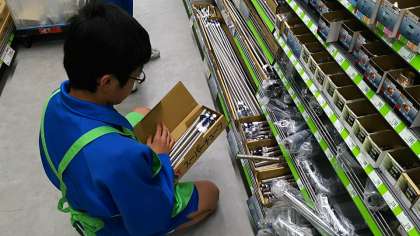 ホームセンターでは、体験活動開始早々から商品の陳列作業に取り組ませていただいてます。
