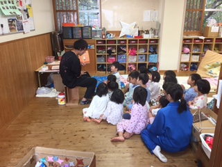 園児と遊んだり、お昼寝をしたり、絵本の読み聞かせをしたりする中で、自分たちが過ごした日々を思い出しながら、優しく園児たちとコミュニケーションをとっています。