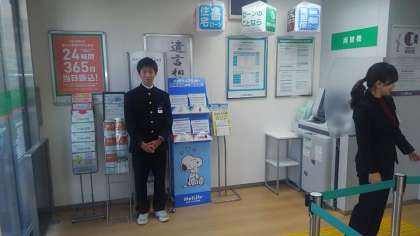 銀行に来られているお客様に、丁寧に挨拶ができていました!この後も頑張れ!