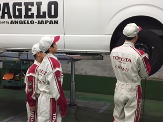 タイヤ交換をしているところを見学しています。