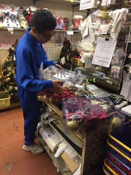 お店はクリスマスの飾りでいっぱいでした。丁寧に箱詰作業をしていました。