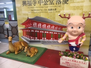 近鉄奈良駅に到着しました!せんとくんがお出迎えです。今から歩いて春日野園地に向かいます。