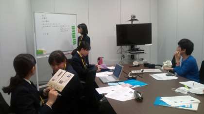 製薬会社の資料館でどうしたら中学生にわかりやすい説明ができるか、プレゼン中。
