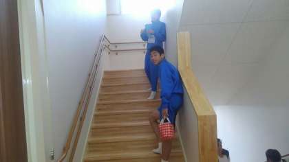 可愛い園児達に囲まれ嬉しそうです。最後まで頑張れ!