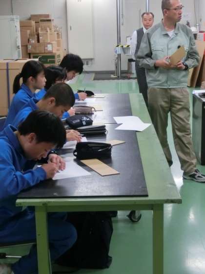 真剣な表情でプリントに書き込みをしています。