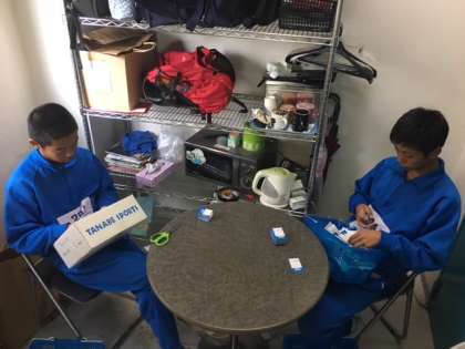 商品を売るには値札をつけます。そのためには根気のいる下準備が必要です。2人で1000枚ぐらいの値札を作っていました。