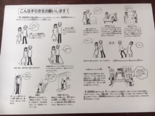 教室へ戻り、アイマスク体験を行う上での、手引きの仕方、コース、注意点などの説明を受けています。