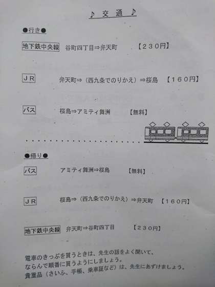 明日のふれあいデイキャンプは校外での活動です。大阪市の他の中学生と一緒に活動します。公共交通機関でのマナー、切符の購入の方法、他者との関わり……等々、楽しみながら学べるとよいですね。