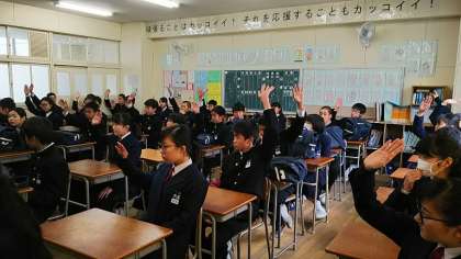 期末テスト最終日の放課後、2年1組では『職場体験の代表生徒打ち合わせ』が行われています。