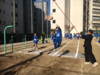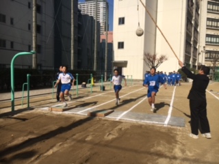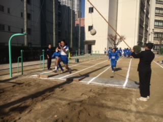 ロイター板とバレーボールを活用して、高く跳ぶ練習をしています。高く跳び、加速スピードを合わせると遠くに跳ぶことができます!頑張れ!