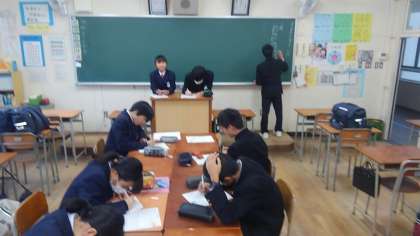 2年生の学代委員会では、先月の反省、今月の目標を話し合っています。