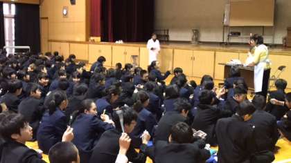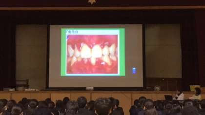 歯と口の健康教室の話が終わり、今から実際に歯の磨き方を学びます。