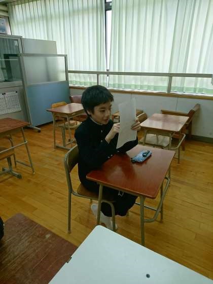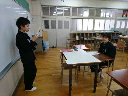 2年生「職場体験を終えて」作文発表会にむけて、作文を読む練習をしています。大きな声ではっきりと、そしてゆっくり読むことを意識して練習しています。