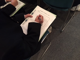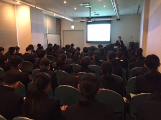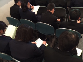 ミュージアムの方のお話を真剣に聞き、メモを取っています。