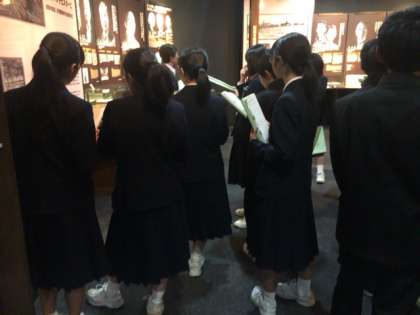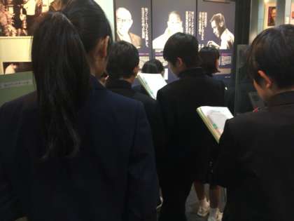見学エリアでは、鉄道や洗濯機、カレーやお菓子など、今はあたり前のようにあるものの歴史を学んでいます。新しいものを生み出すには計り知れない苦労がありますね。みなさん真剣に聞いてメモをとっています。