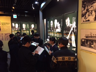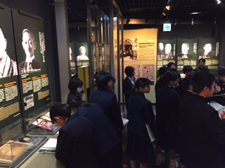 企業家ミュージアム見学の様子です。レジャー・ショッピング関係のコーナー、飲食関係のコーナーの見学です。