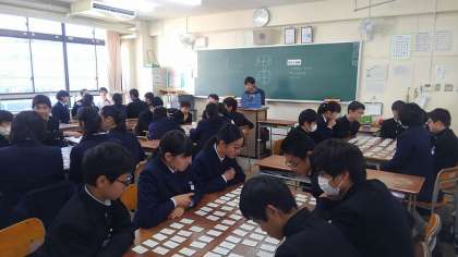 6限目は、1月に実施の百人一首大会に向けての取り組みを行っています。