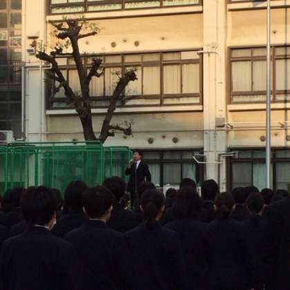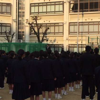 もう一点、文部科学省主催の「全国いじめ問題子どもサミット」が来年1月20日に東京で開催されます。全国から応募があり、東中も応募しました。その結果、大阪の中学校を代表して「全国いじめ問題子どもサミット」の発表校に選出されました。生徒会の仲間が東中生の代表として参加します。これまで生徒会を中心に「いじめは絶対に許さない!東中は絶対にいじめを起こさない!」これまでの取り組みを発表します。この機会にもう一度「自分は仲間から大切にされ、自分も仲間を大切にできる」を目指した集団づくりをこれからも進めていきましょう!生徒会の代表の仲間からまた報告をしてもらいます。