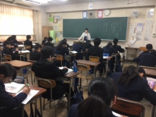 1限目は道徳です。「思いやり」「礼儀」「自律」「命の尊さ」など、読み物教材を使って学んでいます。