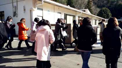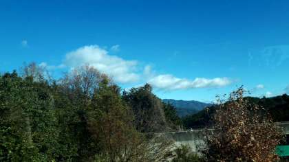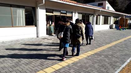 盲導犬訓練センターに着きました。素晴らしい快晴で、山々も美しいです。思っていたより、寒くないです。