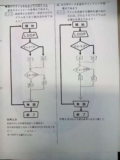 生徒たちはワークシートを使って思考の整理を図りながら、一生懸命プログラミングに取り組んでいました。