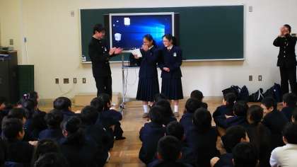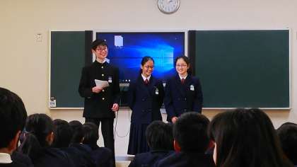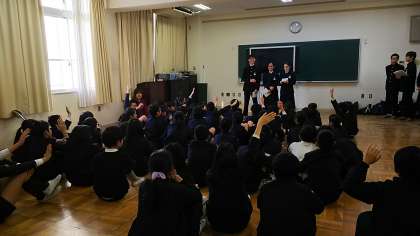 ESS部のみなさんによる紹介は、スリーヒントクイズです。玉造小学校の生徒のみなさんも緊張がほぐれ、積極的に参加してくれました。