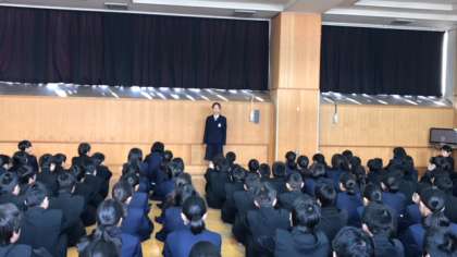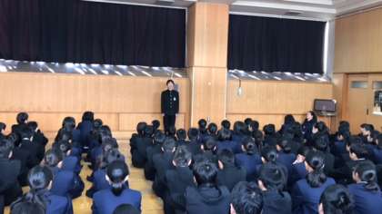 各クラスの学級代表からクラスの反省、3学期の目標を発表がありました。その後は各先生からチャレンジテスト、冬休みの生活、3学期向けての話がありました。