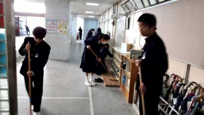 本日、4時限目は、全校生徒による美化活動です。2学期中、お世話になった校舎、施設を感謝の気持ちを込めて、ピカピカに磨いています。