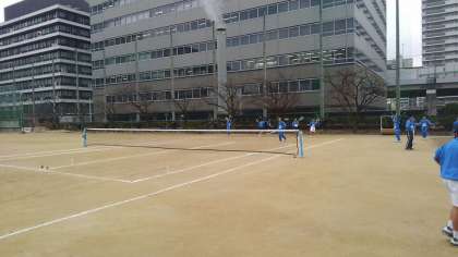日頃からグランドを丁寧に整地しているおかげで、コートで練習ができました。