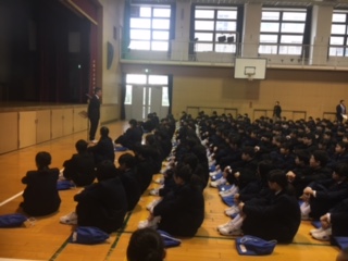 西垣先生からのお話です。新しい年を迎え、自覚を持つようにしましょう。学年としての自覚、部活動生としての自覚、東中生としての自覚を持って日々過ごしましょう。
