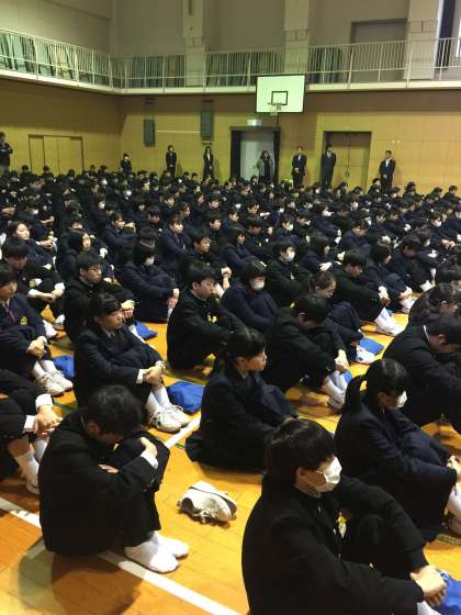 2018年、平成30年が始まりました。そして今日、1月9日3学期がスタートしました。まだ寒さの残る中、体育館にて始業式が行われています。年も変わり、生徒たちは一段と凛々しくなったように見えます。