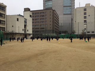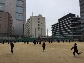 グランドでは東中生が2018年も変わらずに元気よく遊んでいます。