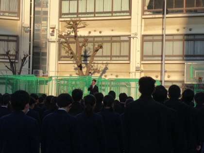 生徒会長の呼びかけのもと、全校集会が始まりました。