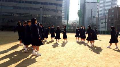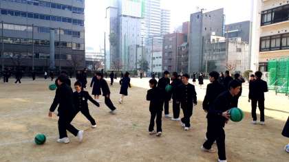 昼休み、太陽の光が気持ちよく、春のような陽気です。そんな中、東中生たちが、運動場が狭しと元気にはし回っています!