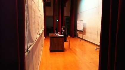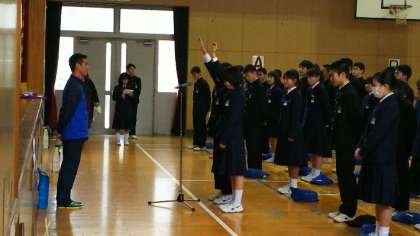 選手宣誓のあと、準備に入りました。いよいよ開始です。先生も裏でスタンバイしています。